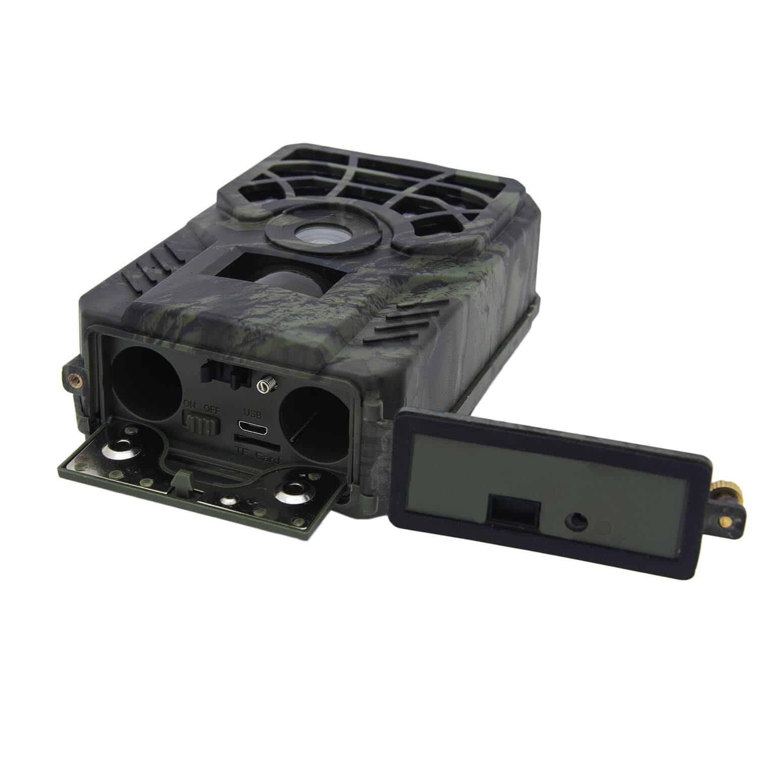Фотоловушка Trail Cam PR300 – это устройство для фотоохоты на природе, для охраны территорий и наблюдения за дикими животными. Видеокамера будет полезна в лесу или для дачи, для охоты, для отслеживания животных или для видеонаблюдения за охраняемым объектом. Лесная камера имеет герметичный прочный пластиковый корпус, который сливается с травой и корой деревьев. Видеокамера для охоты создает качественные фото разрешением 12 МП, которые сохраняются на карту памяти объемом до 32 ГБ. Фотоловушку можно установить на штатив или закрепить на ремешок. В качестве источников питания используются батареи или постоянный ток 5В.